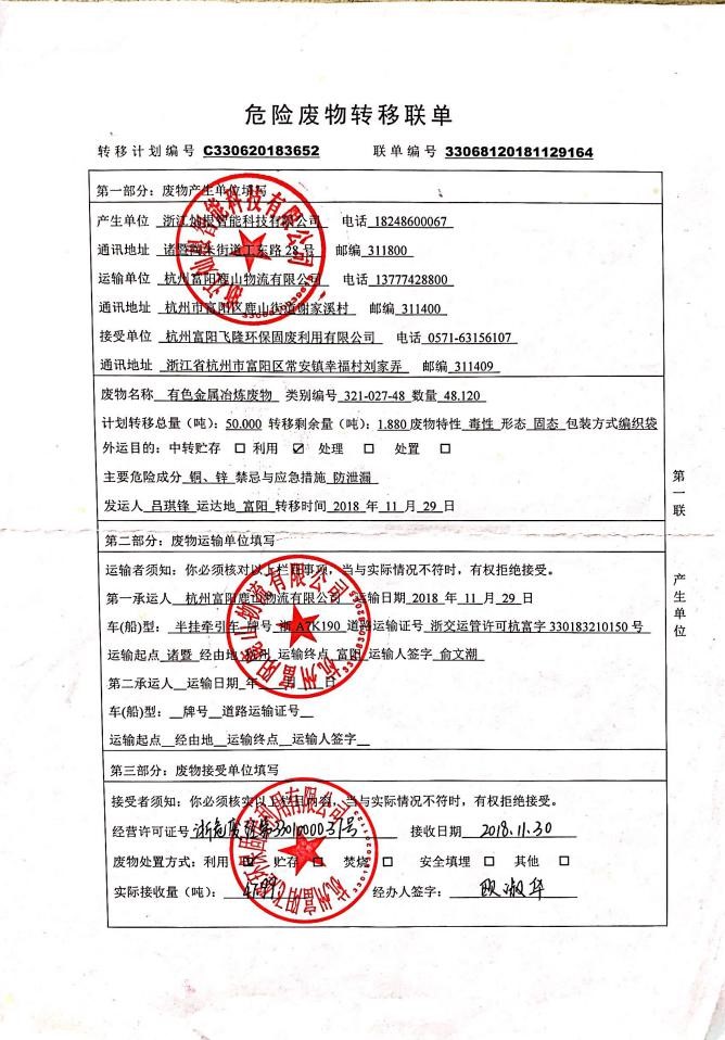 ?关于公司危险废弃物转移处理的声明 浙江灿根智能科技有限公司始创于1988年,注册资金5000万,年销售总额约4.8亿元。目前公司占地面积160亩,员工300人(其中研发人员48人);公司为...